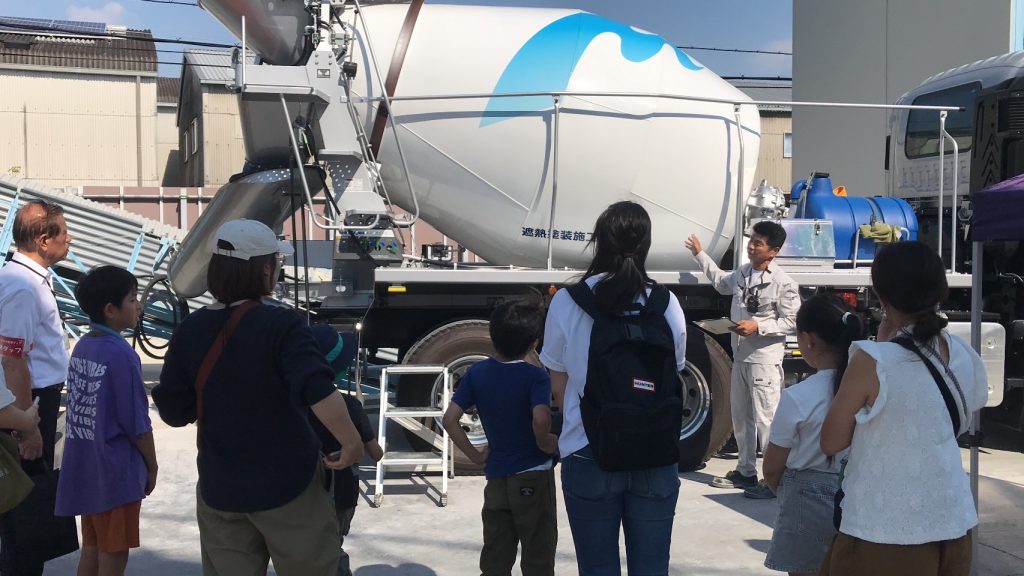 普段乗ることのできないミキサー車乗車体験や、レバー操作の体験、